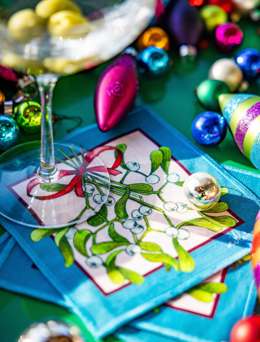 Mistletoe Linen Cocktail Napkins